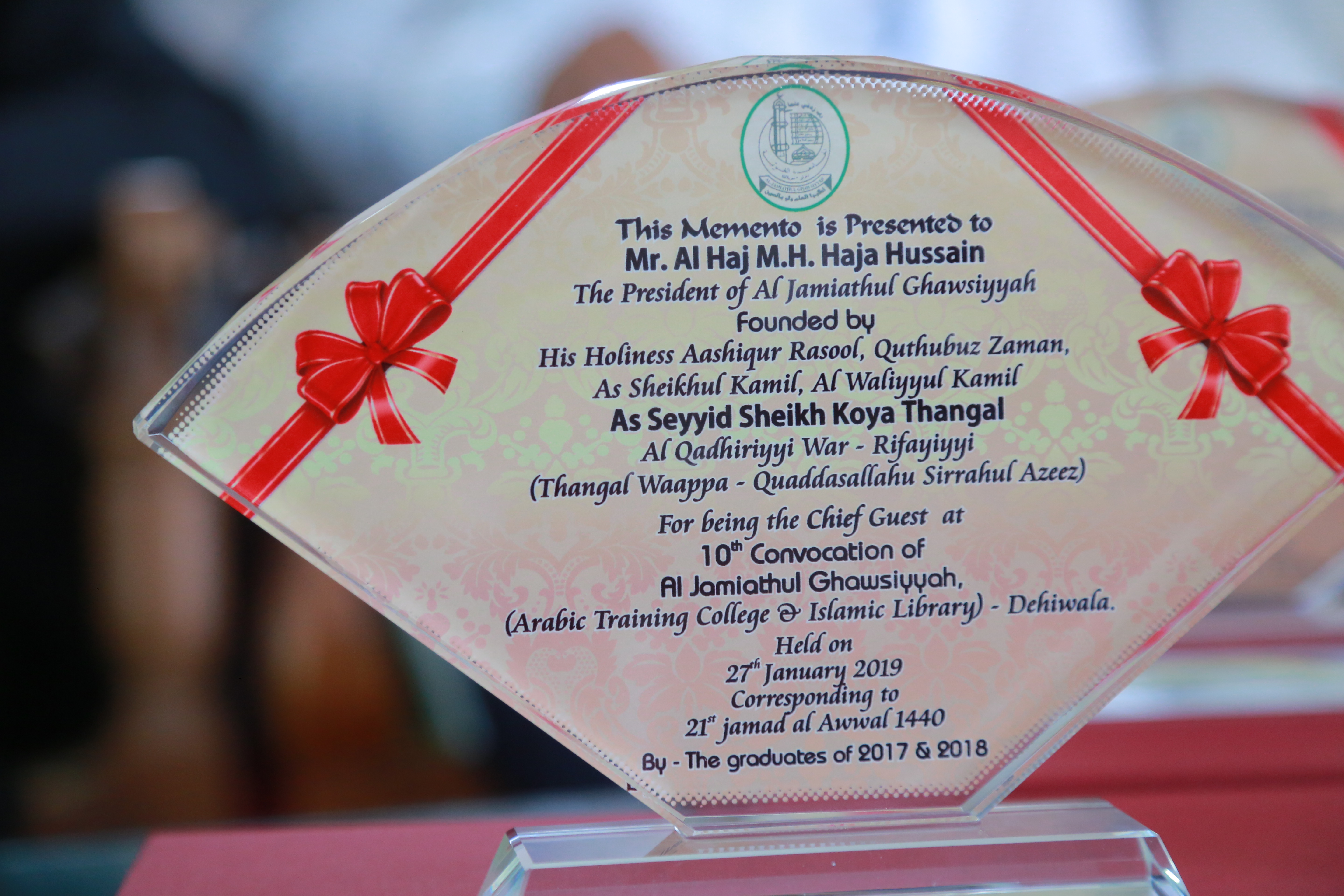 Under the blessings and guidances ofHis Holiness As Seyyid A.I. Hassan PooKoya ThangalHis Holiness As Seyyid A.I. Hussain PooKoya Thangal
